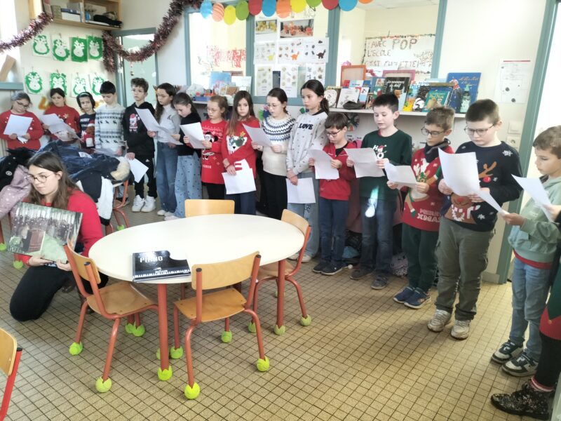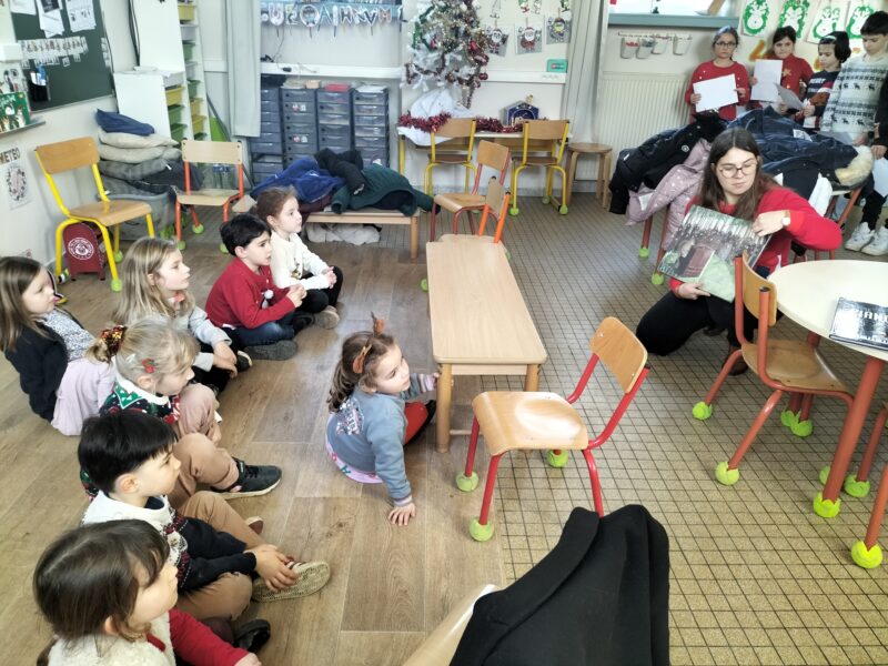 Les élèves de la classe de CE2/CM sont venus lire une histoire de Noël collectivement puis par trio, ils ont lu un album à chacun des Grandes Sections.